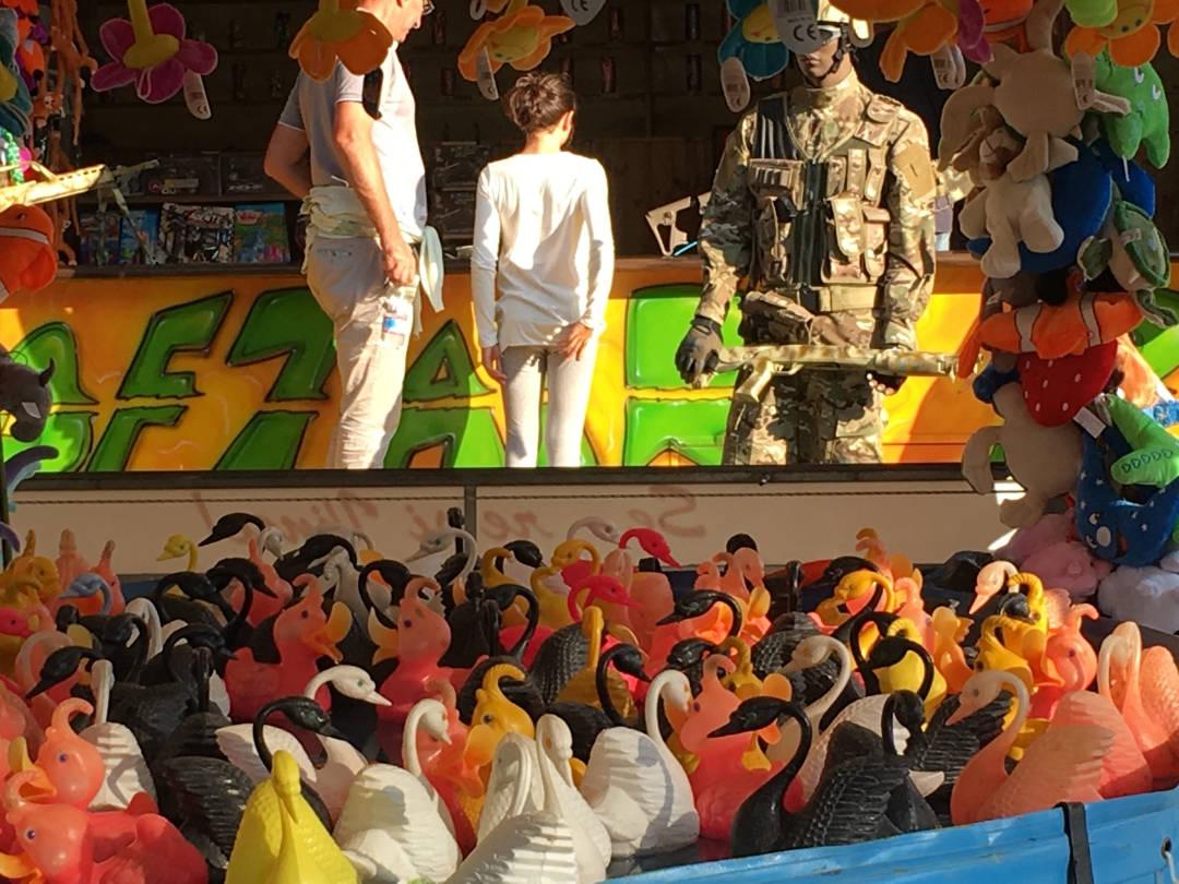Guardando in alto e lasciando spazio a chi vuol entrare.